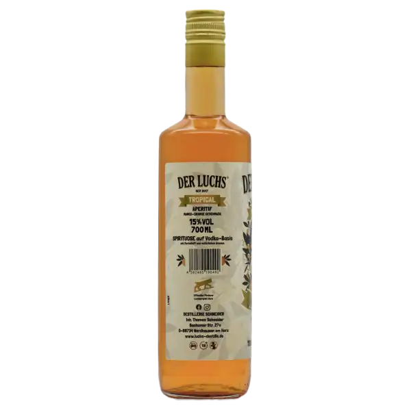 Entdecken Sie die sonnige Welt von DER LUCHS TROPICAL, einem exotischen Genuss für Ihre Sinne! Unsere köstliche Rezeptur bringt den tropischen Flair direkt zu Ihnen nach Hause oder in Ihre Lieblingsbar. Tauchen Sie ein in die fruchtige Vielfalt und lassen Sie sich von den spritzigen Mixvarianten überraschen. Perfekt als leckerer Aperitif für besondere Momente oder einfach als regionaler Longdrink für zwischendurch. Genießen Sie den Geschmack des Sommers mit DER LUCHS TROPICAL - machen Sie jeden Schluck zu einem unvergesslichen Erlebnis in geselliger Runde!"